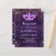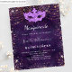 Für eine elegante Masquerade, Quinceañera, 15. Geburtstag. Ein lila Hintergrundmuster. Dekoriert mit Rose vergoldeten Imitaten Glitzer Staub und eine Maskerade Maske. Personalisieren und fügen Sie einen Namen und Party-Details. Der Name wird mit einem handgeschriebenen Stilskript geschrieben