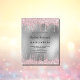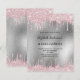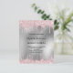 Eine moderne, stilvolle und glamouröse Einladung zu einer Quinceañera, 15. Geburtstagsfeier. Ein Imitat silber metallisch aussehender Hintergrund mit einem eleganten rosa Imitat Glitzer Tropfen, Farbe Tropflook. Der Name ist mit einem schwarzen, modernen Handschrift geschrieben. Personalisieren und fügen Sie Namen, Alter und Party Details hinzu.