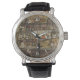 Uhr, Vintage Männeruhr mit schwarzem Lederarmband