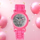 Uhr, Kinderuhr aus Edelstahluhr mit lila Lederarmband