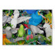 Ursprünglicher Kunstentwurf der bunten Haustierpapageien von den Cockatoos zu den Macaws, zu den conures, zu den Lovebirds, zu den Cockatiels und zu mehr vom Designer Carolyn McFann zwei des schnurrenden Katzen-Studios.