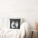 Das Kopfkissen ist mit zwei havanesischen Doggien auf einem schwarzen Hintergrund mit Pfotendrucken versehen