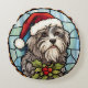 Havanese Stached Glass Christmas Rundes Kissen