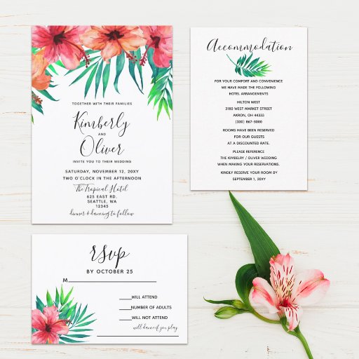 Hawaiian Beach Hochzeit im tropischen Hibiskus Acryleinladungen
