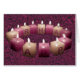 Rosa und weiße Kerzen mit Buchstaben auf jedem ALLES GUTE ZUM GEBURTSTAG formulieren, vereinbart in einem Oval und in einem Set gegen einen lila wirbelnden Hintergrund