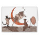 Bezaubernd, stellt Vintage Illustration von einem Leser der Kinder der Antike 1913 Kinderzimmerreim der gehütete Kinder dar: He Diddle Diddle, die Katze und die Geige, die Kuh, die über den Mond gesprungen wird. Der kleine Hund, der gelacht wurde, um solch einen Sport und den Teller zu sehen, lief weg mit dem Löffel. Ein zeitloser Klassiker, geliebt durch alles Alter.