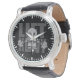 Uhr, Vintage Männeruhr mit schwarzem Lederarmband