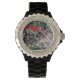 Schwarze Damen Email Strassuhr