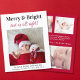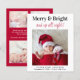 Niedliche, preisgünstige Weihnachtsgeburtserklärung mit dem Foto "Merry & Bright and up all night!", geschrieben in einer Mischung aus eleganter Typografie und einem stilvollen roten Drehbuch und dem Namen und der Geburtsstatistik Ihres Babys. Auf der Rückseite fügen Sie drei zusätzliche Fotos und eine personalisierte saisonale Nachricht.