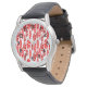 Die Armbanduhr dieses Mannes hat ein sich wiederholendes Ovalmuster in rot und ziegelrot mit verstreuten weißen Ovalen.