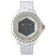 Eine wunderbare Damenuhr mit weißem Armband und grün-weiß-kariertem Ziffernblatt. Trägt sich ganz fabelhaft. Exzellenter Druck, sehr klare Farben. Schönes Design.