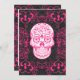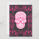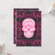 Heiß rosa und schwarzer Zuckerschädel und Rose Gothic Grunge Design, das ist ideal für Tag der Toten oder Halloween oder jeder, der Lieben Skulls oder Goth. Der Hintergrund ist ein subtiles schwarz-graues Damast-Muster. Rosa Rosen, Schnörkel und Wirbel mit rosa und weißem Zuckerschädel in der Mitte.