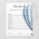 Laden Sie Freunde und Familie ein, sich mit dieser kleinen Dusche, die mit einem wasserfarbenen, blauen Heißluftballon ausgestattet ist, an der Freude der Ankunft Ihres Kleinen zu erfreuen. Matching-Elemente verfügbar. Antworten: KREISE, KREUZEN, SCHNULLER, FLASCHE, NACHTLICHT, LULLABY, STROLLER, EPIDURAL, BURP, HOCHSTUHL, DIAPER BAG, SCHWIMMBAD