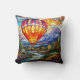 Dekoratorkissen mit Buntglasdesign eines hübschen orangefarbenen und lila Heißluftballons über einem gewundenen Fluss mit majestätischen Hochgebirgen
