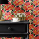 Stilvoll und lebhaft in diesem modernen Cintz-Blumentapete. Ein faszinierendes Muster stilisierter Blüten in Rosa-, Rot- und Gelbtönen vor einem Hintergrund üppiger grüner Blätter und schafft eine lebhafte und exotische Atmosphäre. Dieses Tapete mit Schale und Knüppel lässt sich leicht auftragen und entfernen, sodass es sich perfekt eignet, um jedem Zimmer eine Touch zeitgenössischen Flairs hinzuzufügen.