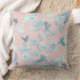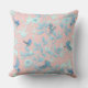 hellblaue Blumen und Vögel , Hintergrundlichtros Kissen