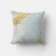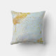 Hellblaue Wasserfarbe, Goldfolie Konfetti und Goldflecken werfen Kissen.