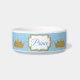 Hübscher Nahrung- für Haustiere/Wasserteller getan in der weißen Keramik, mit einem blauen Band des Himmels, um die Schüssel und die Grafiken der goldtone Kronen. Ein dekoratives Gold und weißer ein PlakettenTextbereich, auf der Front hat den blauen Text, der bereit ist, für Ihren kleinen Prinzen im Wohnsitz zu personifizieren.