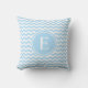 Ein niedliches hellblaues und weißes Zickzack Monogrammthrow-Kissen, zum mit Ihren Initialen besonders angefertigt und personalisiert zu sein.