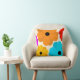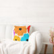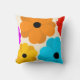 Ein buntes, blumengeschmücktes Kissen mit großen, hellen Blume auf beigem Hintergrund. Fügen Sie einfach das Teppichkissen in Ihren Warenkorb, holen Sie es sich Zuhause, dann genießen Sie es in Ihrem Raum. Helle große Blume florale zeitgenössische Throw Kissen Holidaydesign | ©Melissa Patton - Designer/Illustrator