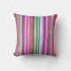 Helle pastellfarbene Streifen in Rosa, Grün, Orange, lila und Weiß bilden ein farbenprächtiges und farbenfroh gestaltetes Sitzkissen. Das Muster wird auf beiden Seiten wiederholt.