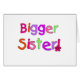 Größere Schwester-T - Shirts, Tassen, Taschentaschen, Knöpfe und mehr, vervollkommnen für die mittlere Größenschwester, heller den rosa der Eigenschaften, den lila, den grünen und den orange Textentwurf!