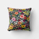 Helles, florales Satinmuster auf schwarz Kissen