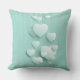 Hellgrüner Hintergrund mit 3D-weißen Herzen Kissen