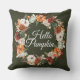 Hello pumpkin fall harvest floral white script throw pillow with sage green color.