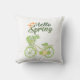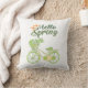 Alt Text: A vintage bicycle illustration with a flower basket and the text "Hello Spring" on a light background.