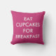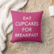 Dieses fuchsia Kissen ist mit dem niedlichen Sprichwort, Eat Cupcakes For Breakfast auf der Vorderseite dekoriert, und die Rückseite ist mit einem Namen oder Sprichwort, das Sie bevorzugen, und macht es perfekt für ein Zimmer oder Kinderzimmer.