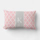 Einfacher, eleganter, moderner und modischer Marokkaner, quatrefoil, Fliese, Gitter oder Gittermuster oder -entwurf für Wurfs-Kissen oder Kissen. Pastell- oder hellrosa und weißer Farbhintergrund mit einem Blockstreifen des Akzents hellgrauen (oder Graus) Farbund weißes kundenspezifisches Monogramm oder Initiale in einem preppy Schriftart. Personifizieren Sie Ihr Geschenk, indem Sie Ihre eigenen Initialen addieren. Beschließen Sie Ihren eigenen Schriftart und Farben, um es Ihre Selbst zu machen. Dieser trendy und Chicentwurf erhöht alle mögliche Wohngestaltung-, Wohnzimmer-, Sofa-, Aufenthaltsraum-, Schlafzimmer-, Büro-, Boots-, Strandhaus-, Wohnungs-, Hochschul- oder Unischlafsaalraum-, -Kinderzimmer-, -jungen-, -mädchen-, -kinder- oder -jugendlichräume. Ein perfektes Geschenk für selbst oder jemand Sie Liebe.