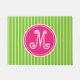 Diese niedliche Türmatte ist mit leuchtend kalk-grünen und weißen Streifen versehen. Personalisieren Sie das gürtelrosa und weiße Monogramm mit Ihrer Wahl des Initials.