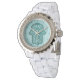 Eine wunderbare Damenuhr mit weißem Armband und grün-weiß-kariertem Ziffernblatt. Trägt sich ganz fabelhaft. Exzellenter Druck, sehr klare Farben. Schönes Design.
