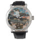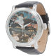 Uhr, Vintage Männeruhr mit schwarzem Lederarmband
