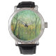 Uhr, Vintage Männeruhr mit schwarzem Lederarmband