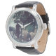 Uhr, Vintage Männeruhr mit schwarzem Lederarmband