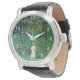 Uhr, Vintage Männeruhr mit schwarzem Lederarmband
