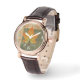 Die perfekte Armbanduhr aus viereckigem, braunem Leder mit einem Bild eines grünen, orangefarbenen und gelben Ahornblattes auf gesteppt grün und braun. Hier sehen Sie den passenden quadratischen Charme, großen quadratischen Premium-Schlüsselanhänger aus Metall und viereckigen doppelseitigen Acryl-Schlüsselanhänger. Sehen Sie sich die gesamte Erntedank-Watch-Sammlung unter der Rubrik ACCESSORIES im Bereich HOLIDAYS an.