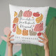 Ein niedliches Kissen mit Kürbissen und der Phrase "Dankbar Grateful Gesegnet" - personalisiert mit einem Familiennamen und festem Datum.