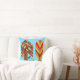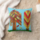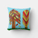 Dieses Kissen hat ein Art Deko Design von Bäumen gefärbt für den Fall aus verschiedenen Formen auf einem Feld von blau.
