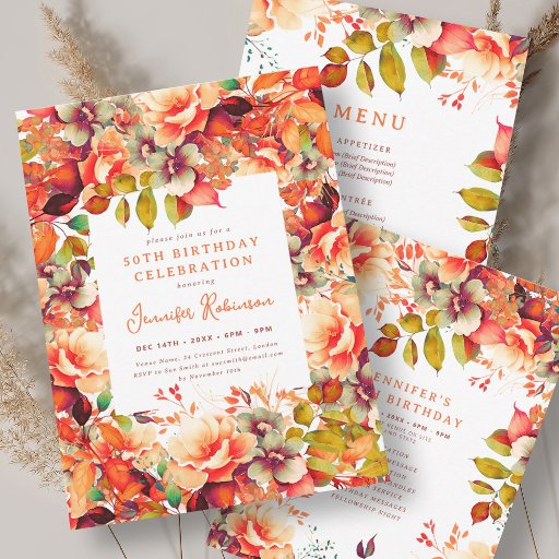 Fall Autumn Watercolor Floral 50th Birthday SetDesignt von Marta Burton