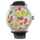 Herbstblätter, Aquarellfarbe weiß Armbanduhr