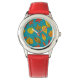 Kinderuhr aus Edelstahl mit rotem Lederarmband