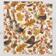 Handgemalte Herbstmuster mit verschiedenen Herbstvorführungen, Blätter, Beeren, Eicheln, Vögeln und Pilzen