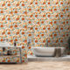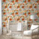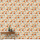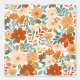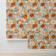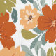 Blumenmuster mit warmen Herbstfarben in gebrannten Orangen, weichem Beige und gedämpften Grüntönen. Stilvolle Blume und zarte Blätter verstreut.