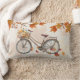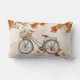 Hübsches Kissen für Ihre Wohngestaltung im Herbst, das mit einem Fahrrad mit einem Korb mit Kürbis und Laub rund. Das gleiche Design ist auf beiden Seiten.