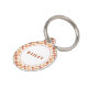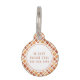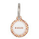 Dieses personalisierte Tier-ID-Tag zeigt den Namen Ihres Tieres auf einem karierten, orangen, weißen und bordeauxfarbenen Hintergrund. Back-Funktionen Kontaktinformationen.