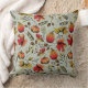 Genießen Sie den Zauber des Herbstes mit diesem wunderschönen Kissen. illustrierte Designs von Nathalie Portet aus einer Herbsternte-Szene mit bunten Kürbissen, Kürbissen, Eicheln und Herbstblättern auf elegantem, grünen Hintergrund.