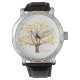 Herbstgoldbaum Vintager Lederstreifen Armbanduhr